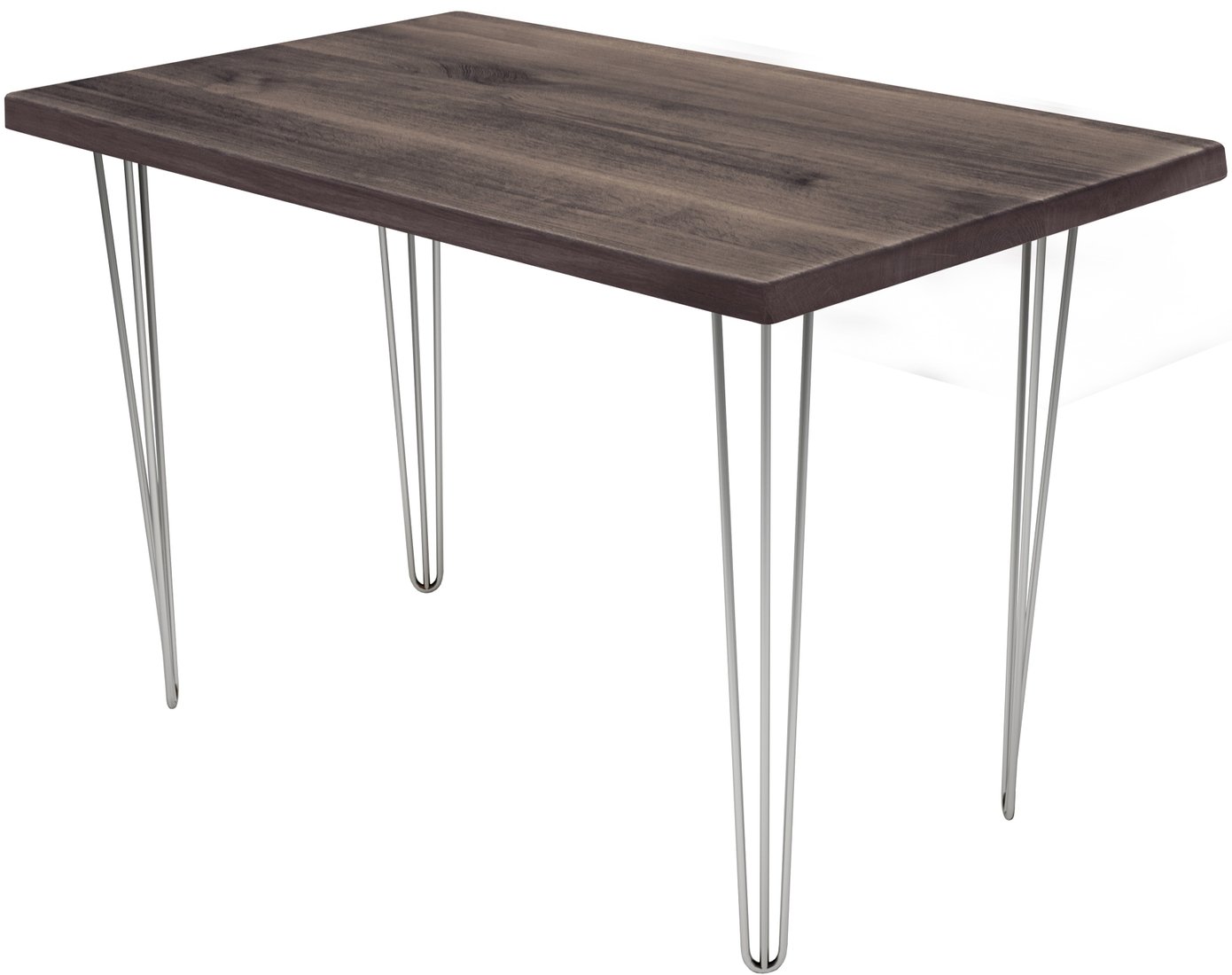 прямоугольная, 1100x800 мм, высота 750 мм, материал: массив дерева (столешница), окрашенная сталь (опоры), коричневый