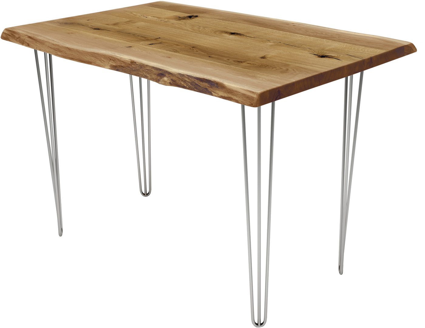 Кухонный стол Buro7 Грасхопер 110 (с обзолом и сучками, дуб натуральный/серебро)