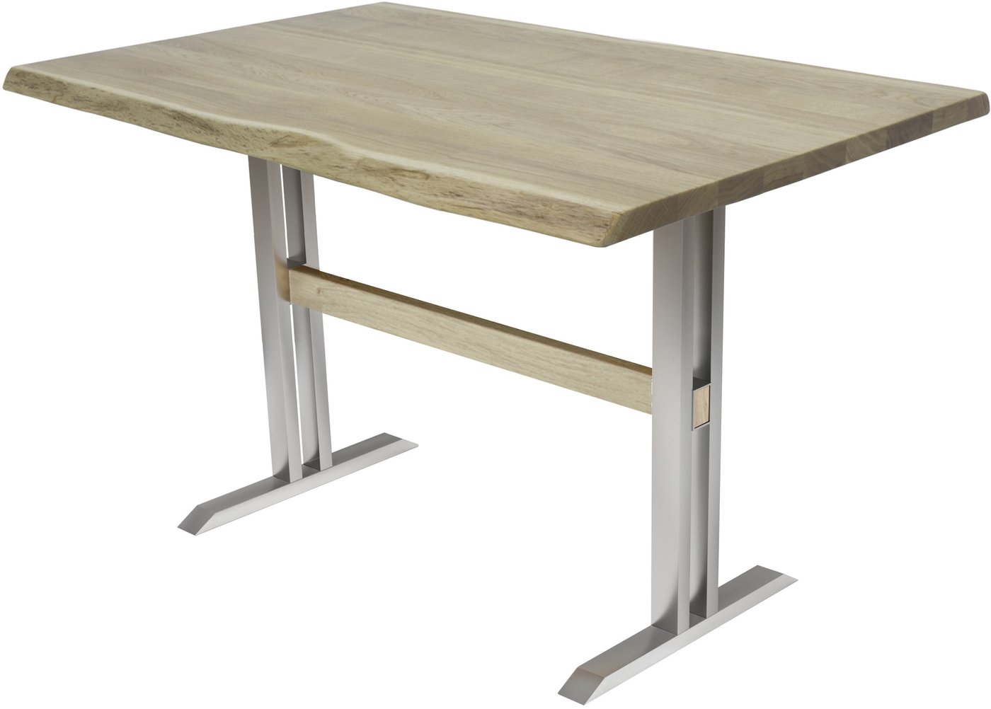 Кухонный стол Buro7 Двутавр 120 (с обзолом, дуб беленый/серебро)