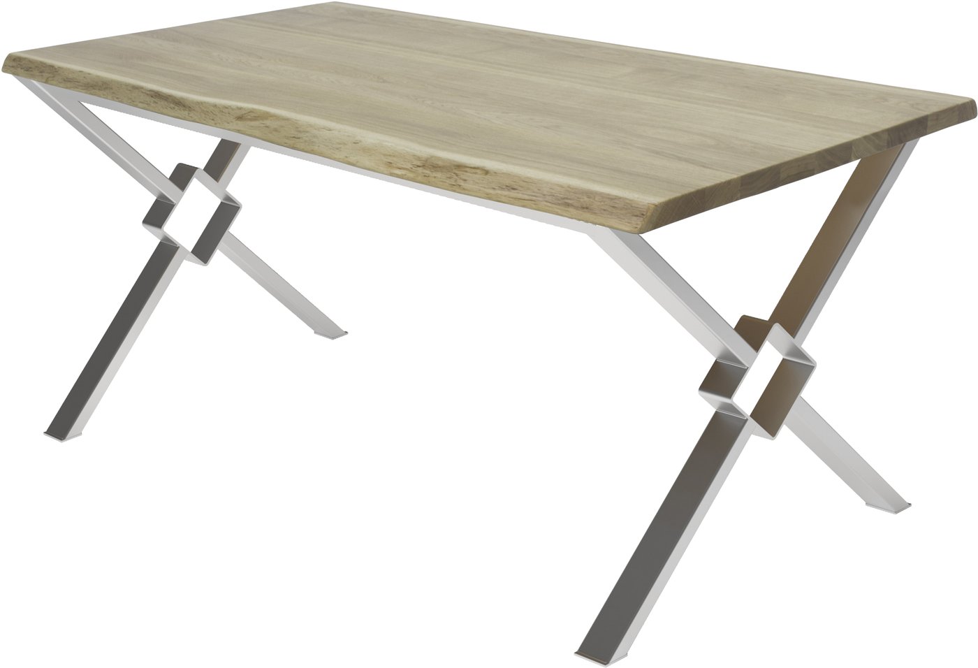 Кухонный стол Buro7 Икс-ромб 180 (с обзолом, дуб беленый/серебро)