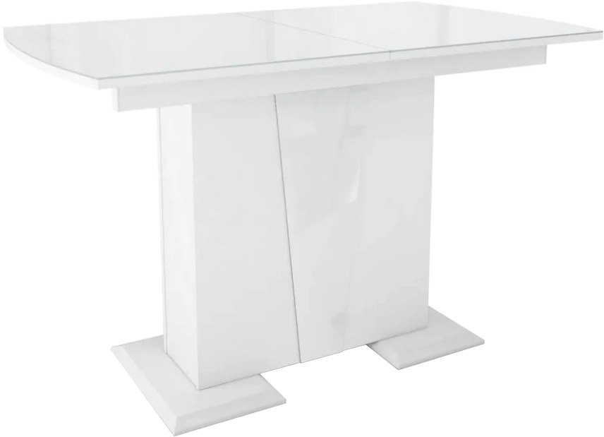 прямоугольная, раздвижной, 700x1200 мм, высота 760 мм, в разложенном виде 1600x700x760 мм, материал: ЛДСП/стекло (столешница), ЛДСП/МДФ (опоры), белый