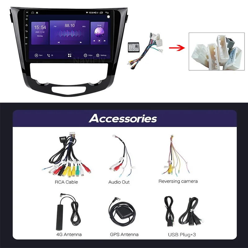 NaviFly Multimedia Player Android 10 Car DVD Radio For Nissan X Trail 3 T32 2013 - 2017 Qashqai Carplay 6GB+128GB QLED 1280*720