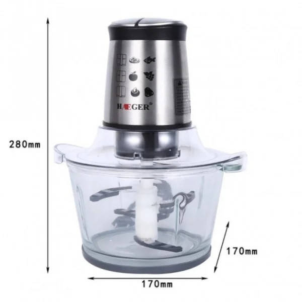 Лучший мощный универсальный стационарный блендер со стеклянной чашей Haeger HG-7005 для овощей и фруктов, миксер чоппер для измельчения переработки мяса в пюре. Мощность, Вт: 500