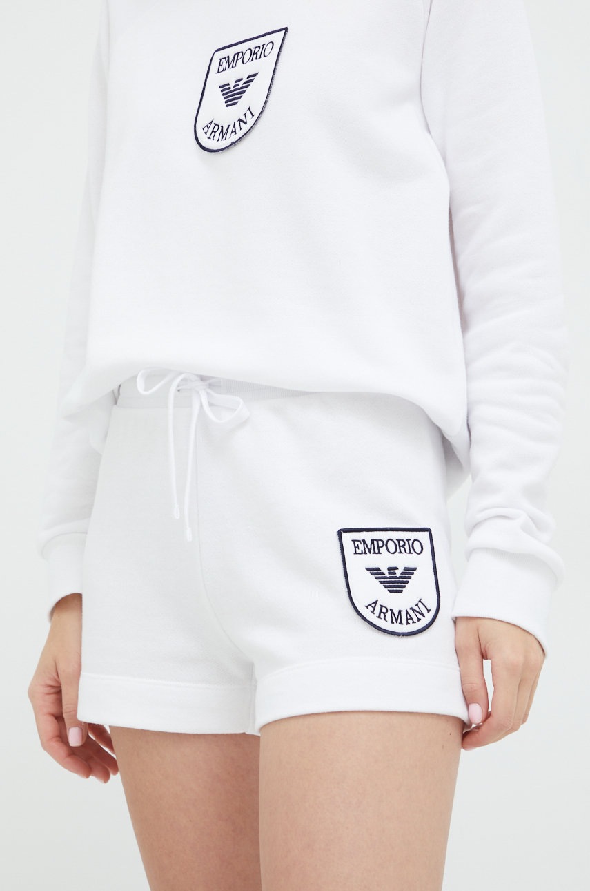 Къси панталони Emporio Armani Underwear в бяло с апликация със стандартна талия, Бял