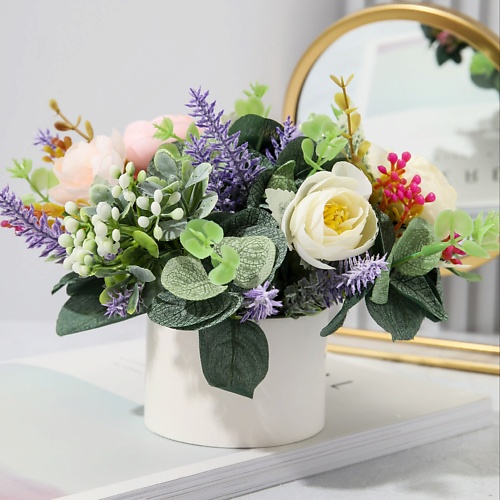 ЛЬНЯНКА HOME Искусственные цветы для декора. Цветочная композиция в горшке, Искусственные цветы для декора. Цветочная композиция в горшке
