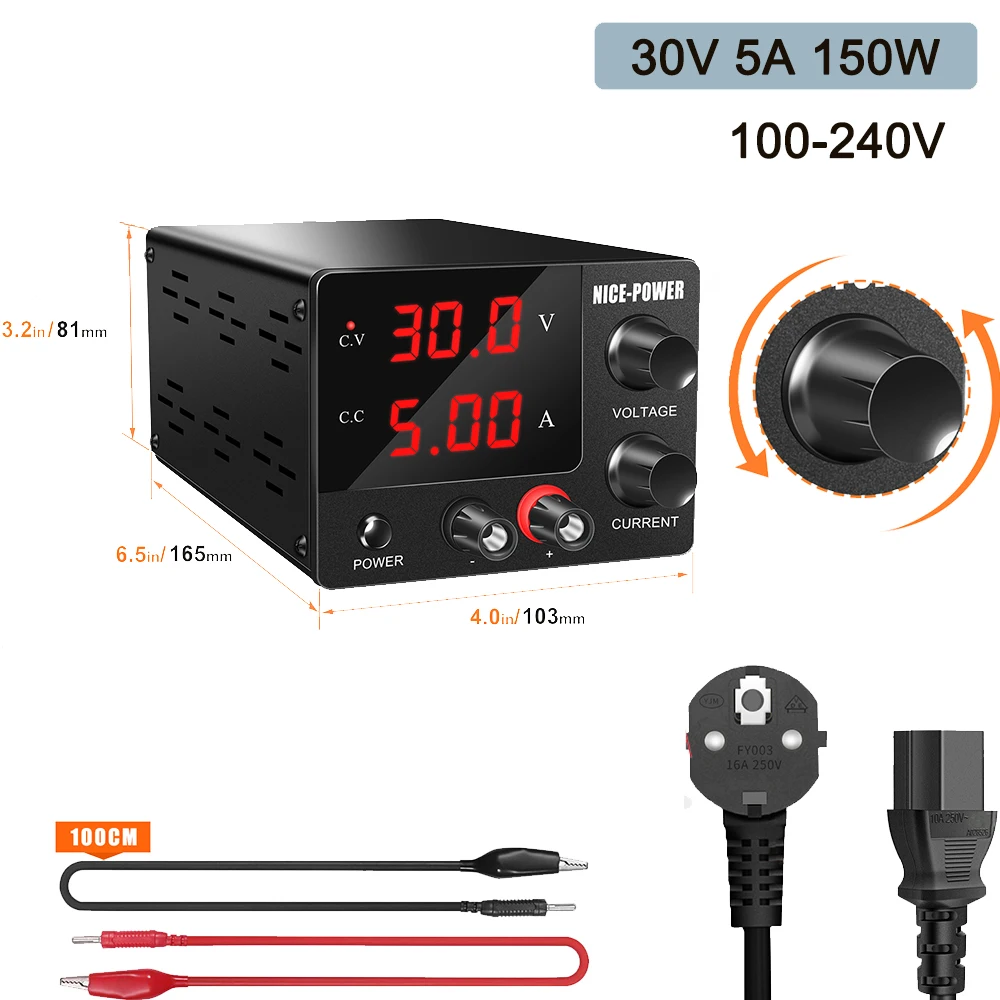 Лабораторный Регулируемый источник питания постоянного тока, 30 В, 5 А, лабораторный Настольный Регулируемый регулятор напряжения, ремонт ноутбука, переделка, 100-240 В