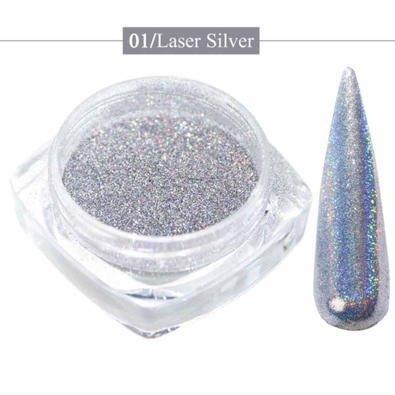 Лазерный блеск порошок пигмент для ногтей градиент зеркальный эффект дизайн ногтей хром блестки сияющий польский порошок 01