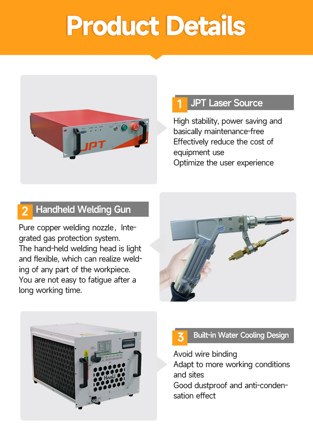 Лазерный сварочный аппарат JPT 1000 Вт/1500 Вт/2000 Вт с автоматическим проводным фидером, волоконно-лазерный аппарат, ручной лазерный сварочный аппарат