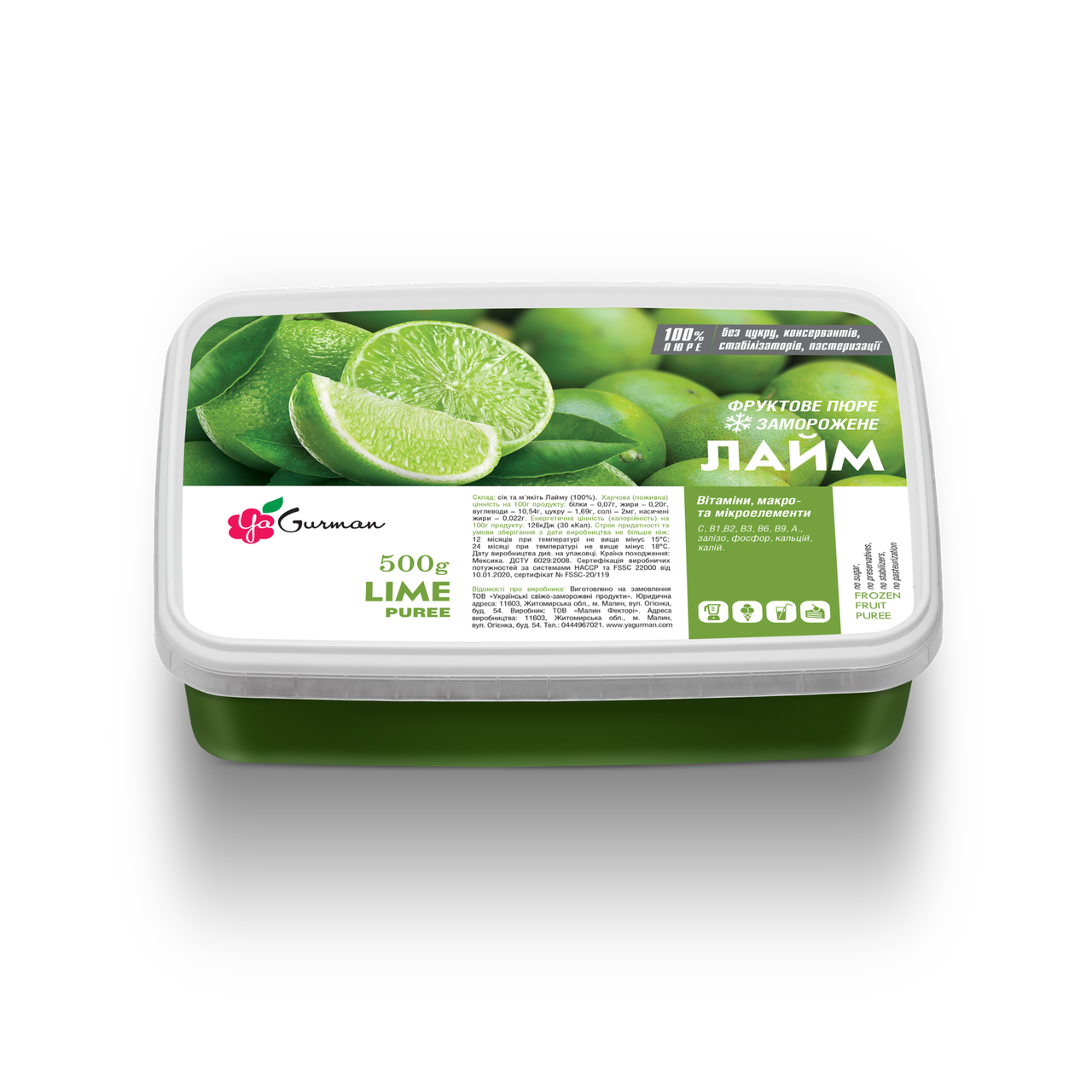 Лайм, пюре заморожене без цукру, YaGurman 500г
