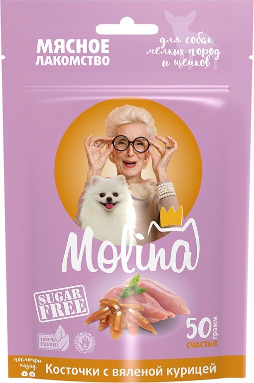 Лакомство для собак Molina для мелких пород и щенков Косточки с вяленой курицей 50 г