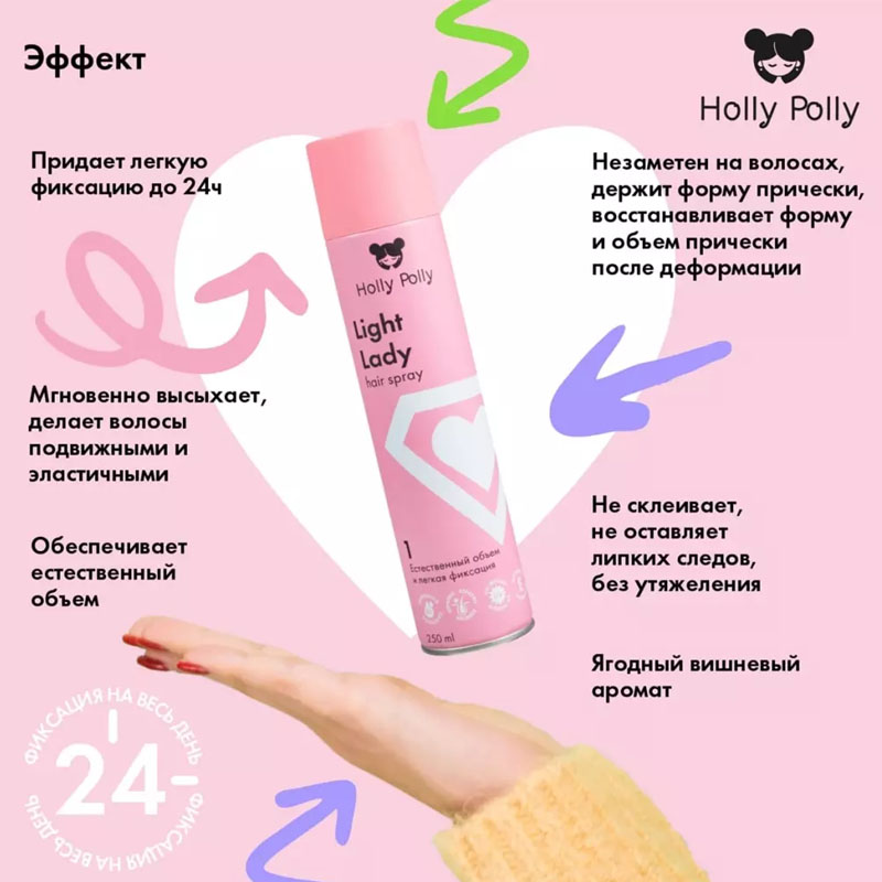 Лак для волос Holly Polly Light Lady Естественный Объем и Легкая Фиксация 250 мл