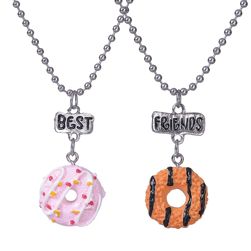 Strawberry Doughnut Simulation bff 2 Pendant Necklace Resin Best friends Friendship Jewelry Fashion Souvenir Gifts For Kids 2018