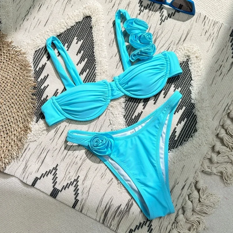 Сексуальное бикини с 3D цветами, женские купальники, женский купальник, комплект бикини из двух частей, купальный костюм, бикини с эффектом пуш-ап