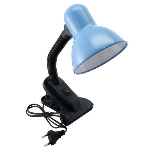 Классическая настольная лампа с гибкой ножкой, имеет клипсу-зажим вместо обычной подставки. Благодаря этому ее удобно крепить как к столешнице, так и к полке шкафчика или любой другой поверхности. Лампа идеально подойдет как небольшой источник света во время чтения книги, письма и т.д. С помощью гибкой ножки свет можно направлять в любую сторону. В стандартный патрон можно устанавливать энергосберегающие, светодиодные лампочки или лампы накалывания. Максимальное раскрытие клипсы: 30 мм Стандартный патрон: Е27 Цвет плафона: синий, зеленый, розовый, красный, фиолетовый, черный (при заказе можете указывать желаемый цвет) Питание: AC 220 В Размеры плафона: диаметр 110 мм, высота 123 мм Высота ножки: 140 мм Размеры клипсы: 115 х 90 х 60 мм Длина шнура питания: 72 см Вес: 268 г