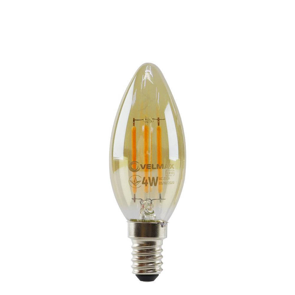 Лампа светодиодная C37 свеча Velmax Filament 4W E14 2200К 220V 21-42-37