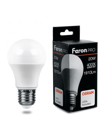 Лампа светодиодная E27 груша/A65, 20Вт, 4000K / белый, 1810лм, Feron.PRO LB-1020 (38042), LB-1020