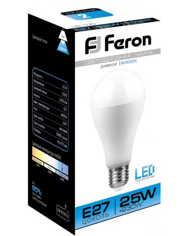 Лампа светодиодная E27 груша/A65, 25Вт, 6400K / дневной, 2200лм, Feron LB-100 (25792), LB-100