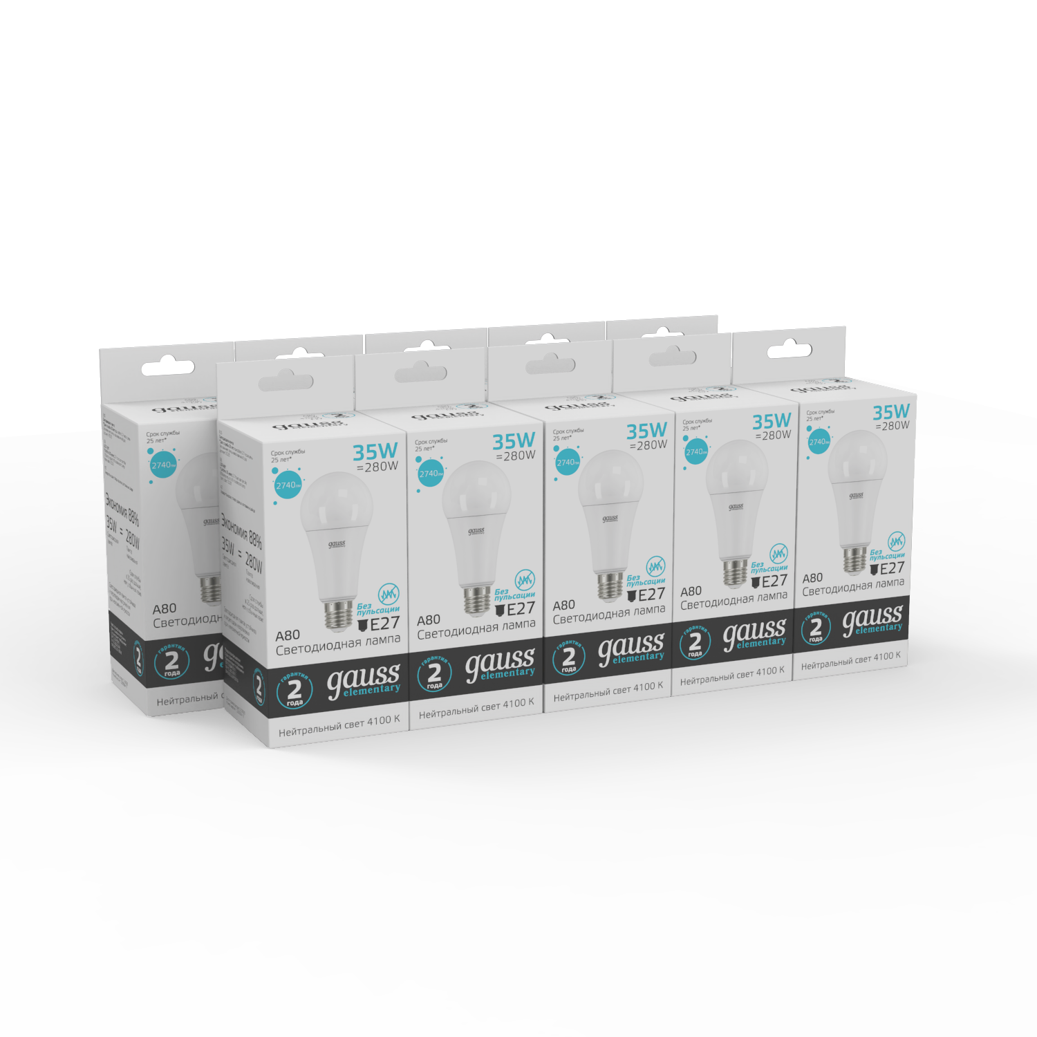 Лампа светодиодная E27 груша/A67, 35 Вт, 4100 K/нейтральный свет, 2740лм, 220 В, 10 шт., Gauss Elementary (70225_10)