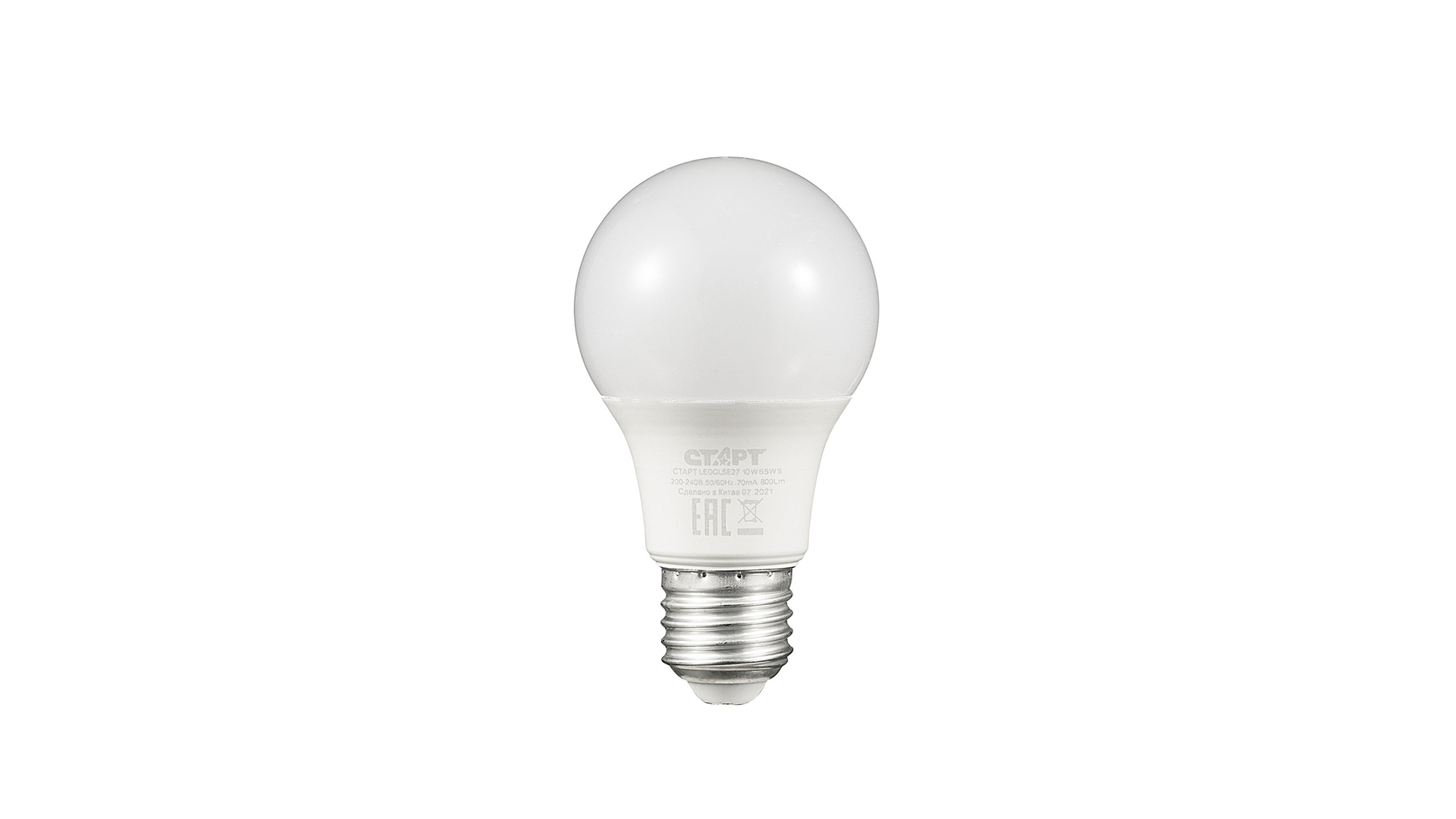 Лампа светодиодная E27 грушевидная, 10 Вт, 6500 K / холодный свет, 220 В, СТАРТ LEDGLSE27 10W 65 WS (17289), LEDGLSE27 10W 65 WS