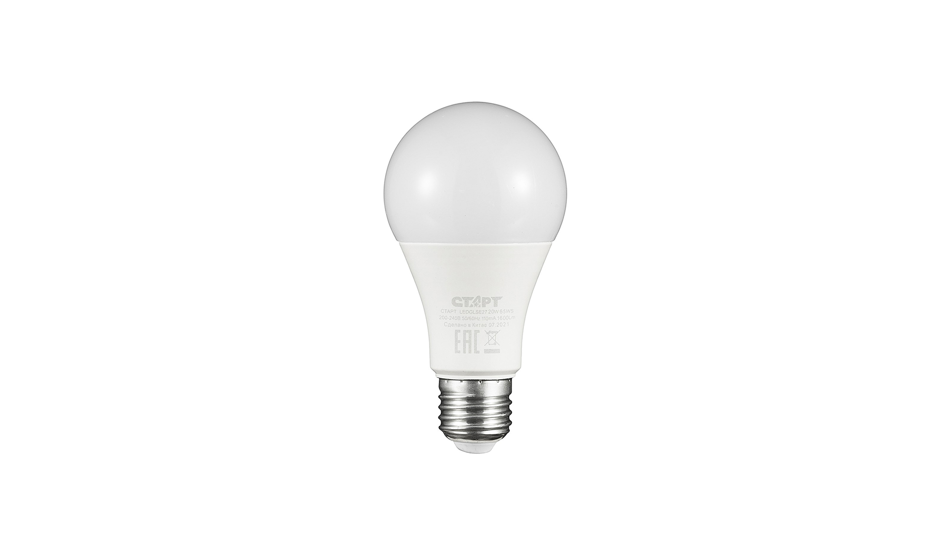 Лампа светодиодная E27 грушевидная, 20 Вт, 6500 K / холодный свет, 220 В, СТАРТ LEDGLSE27 20W 65 WS (17283), LEDGLSE27 20W 65 WS