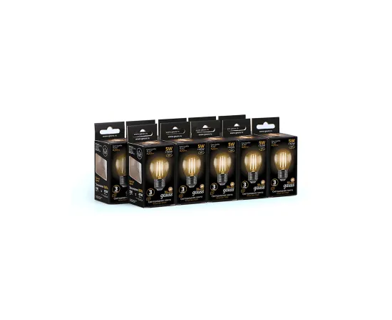 Лампа светодиодная E27 шар/G45, 5 Вт, 2700 K/теплый свет, 420лм, филаментная, 220 В, 10 шт., Gauss Black Filament Crystal (105802105_10)