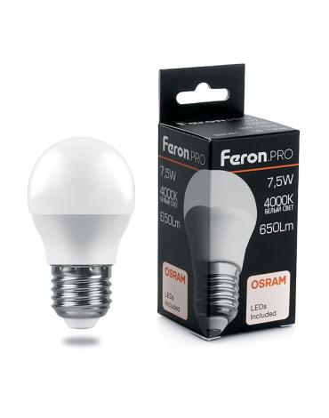 Лампа светодиодная E27 шар/G45, 7.5Вт, 4000K / белый, 650лм, Feron.PRO LB-1407 (38075), LB-1407
