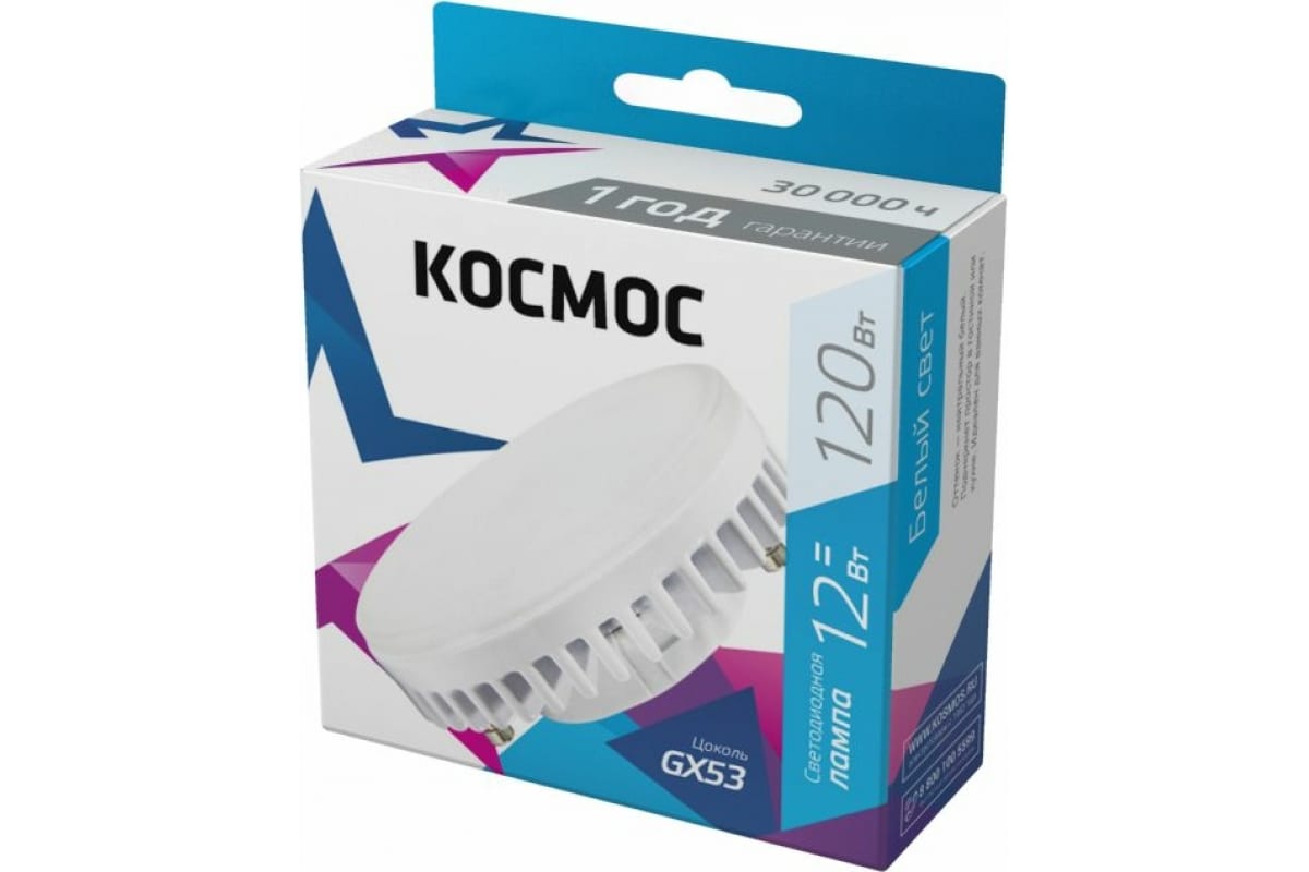 Лампа светодиодная GX53, T75, 12Вт, 960лм, 4500 K/нейтральный, 80 Ra, КОСМОС Lksm_LED12wGX5345C (Lksm_LED12wGX5345C), Lksm_LED12wGX5345C