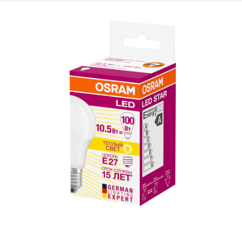 Лампа Osram светодиодная Груша теплый свет Е27 10.5Вт