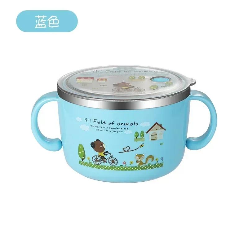 Ланч-бокс для детей, симпатичная миска для супа и лапши из нержавеющей стали, большая емкость, устойчивая к падениям и ожогам, контейнеры для школьной еды Bento синий