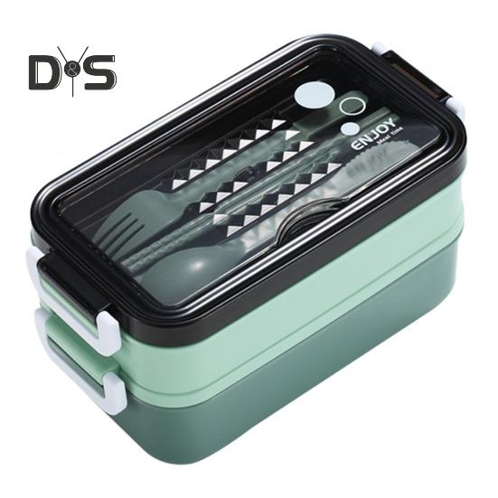 Ланч-бокс со столовыми приборами, герметичная коробка большой емкости, легко чистящаяся коробка для еды Bento для домашнего офиса, школы зелёный