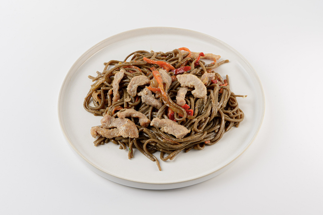 Лапша соба со свининой и овощами с соусом терияки 200 г