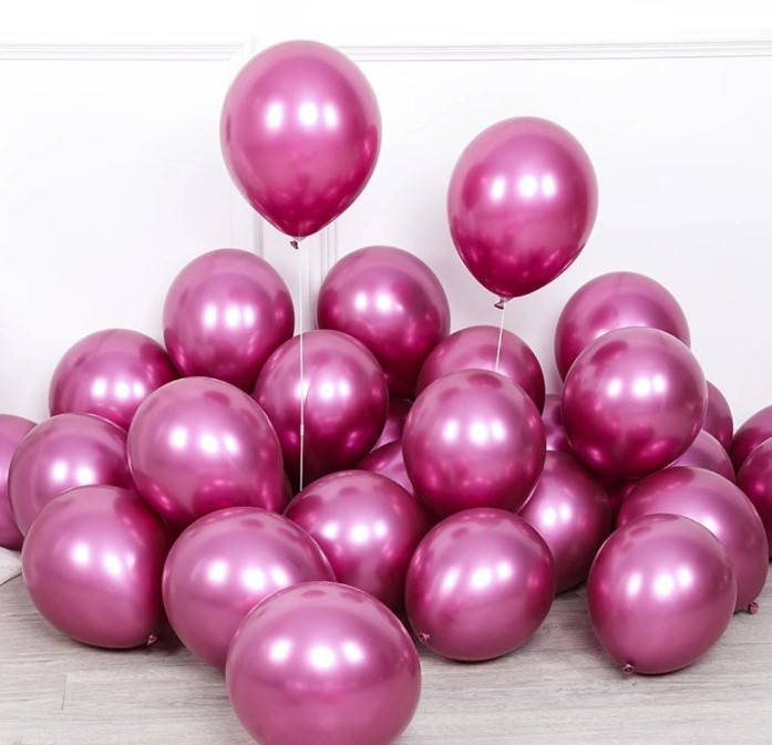 Латексные надувные шары ХРОМ РОЗОВЫЙ, не прозрачные.