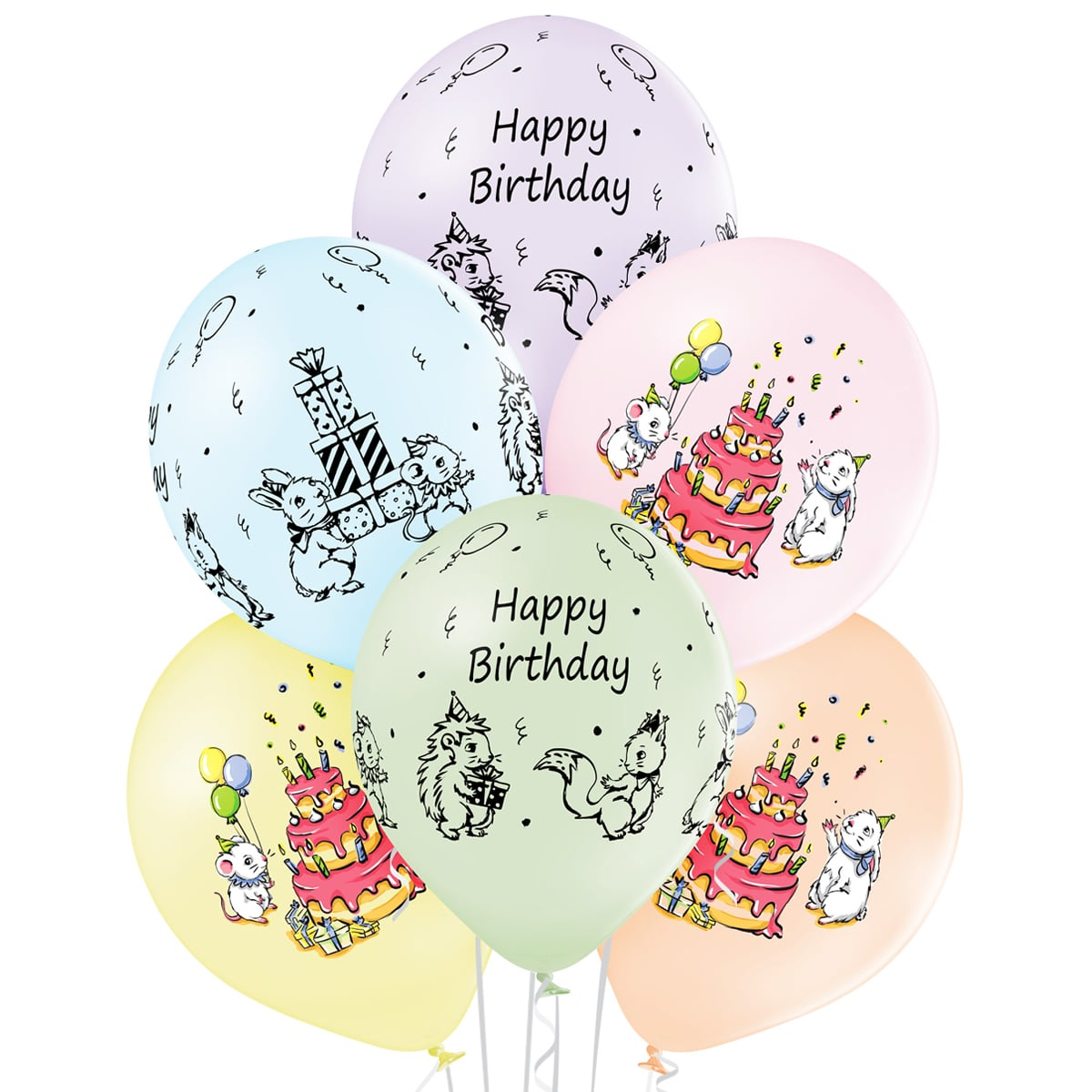 Латексный шарик BELBAL 12"(30 см) Happy Birthday Зверушки, Персиковый