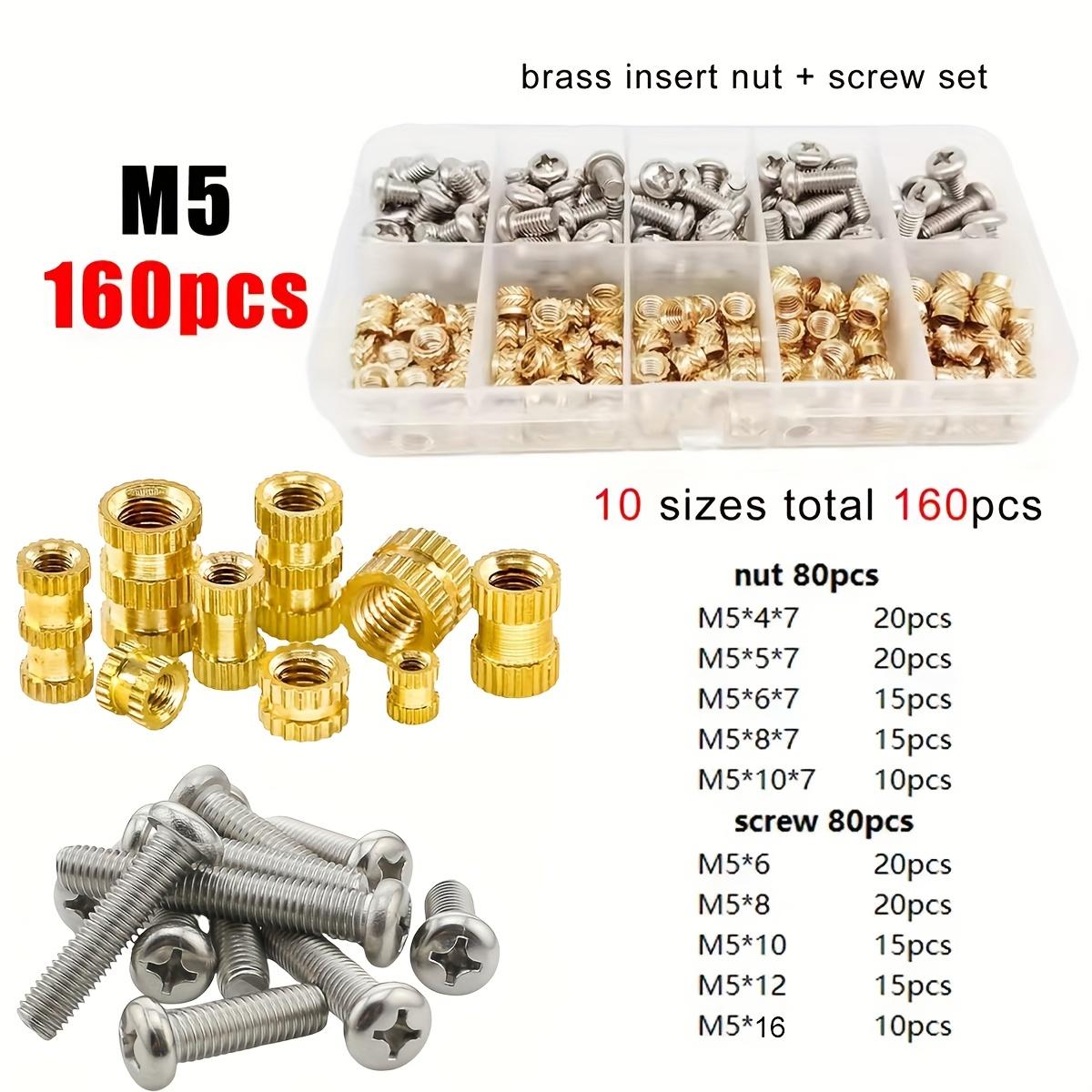 Латунная медная витая спиральная литьевая горячая расплавленная 3D-печать Встроенная вставная гайка Комплект винтов, Гайки, Набор винтов M5 160PCS