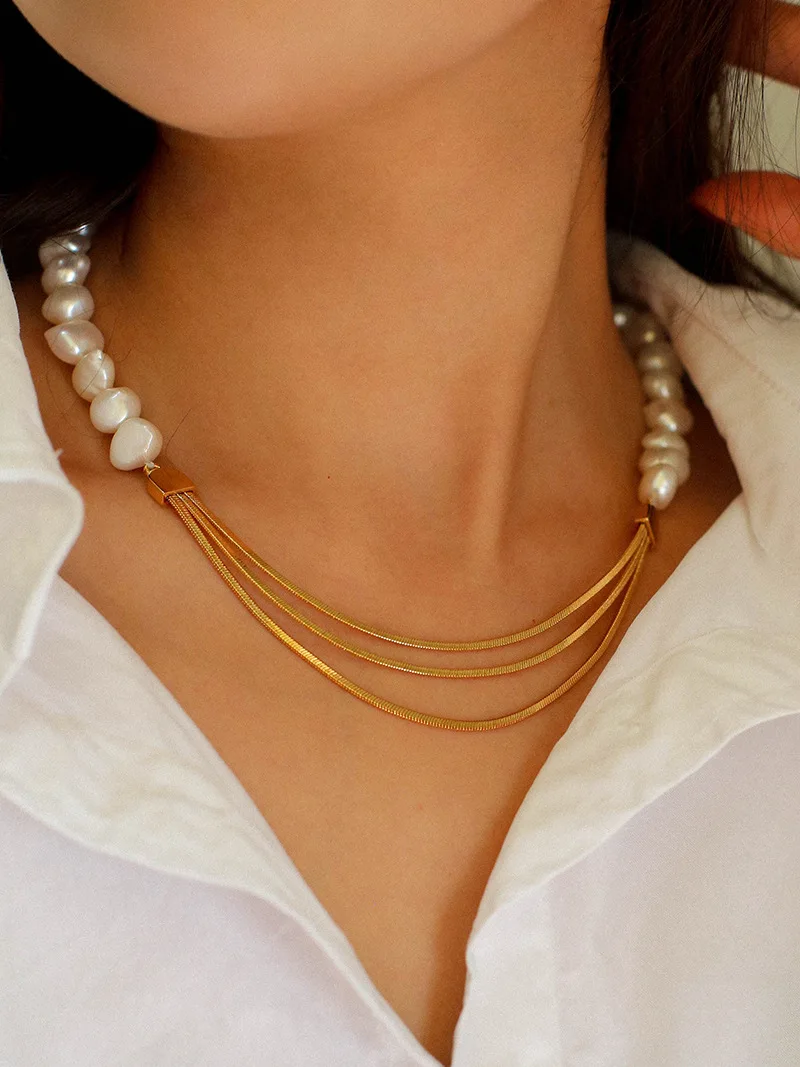 Латунная многослойная змея Chian ожерелья с натуральным жемчугом женские ювелирные изделия панк хип-хоп дизайнерское подиумное Платье Бохо Топ Япония