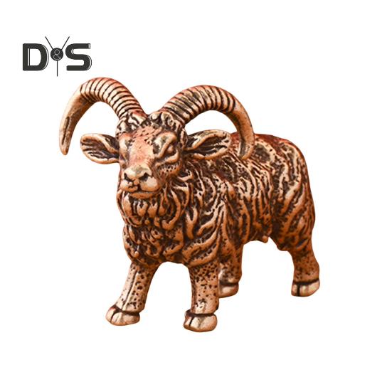 Латунная статуэтка козла, винтажная модель овцы с длинным рогом, мини-статуэтка животного из металла, настольная скульптура в стиле фэн-шуй, настольное украшение, орнамент бронзовый