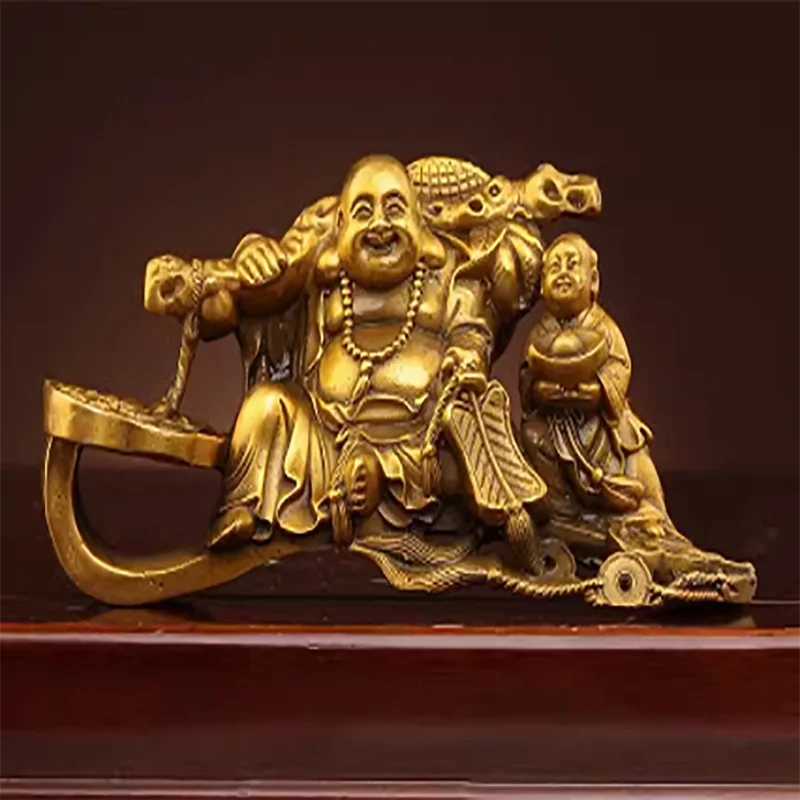 Латунная статуя Будды Maitreya, большой живот, смайлик Будды тканевый мешок орнамент