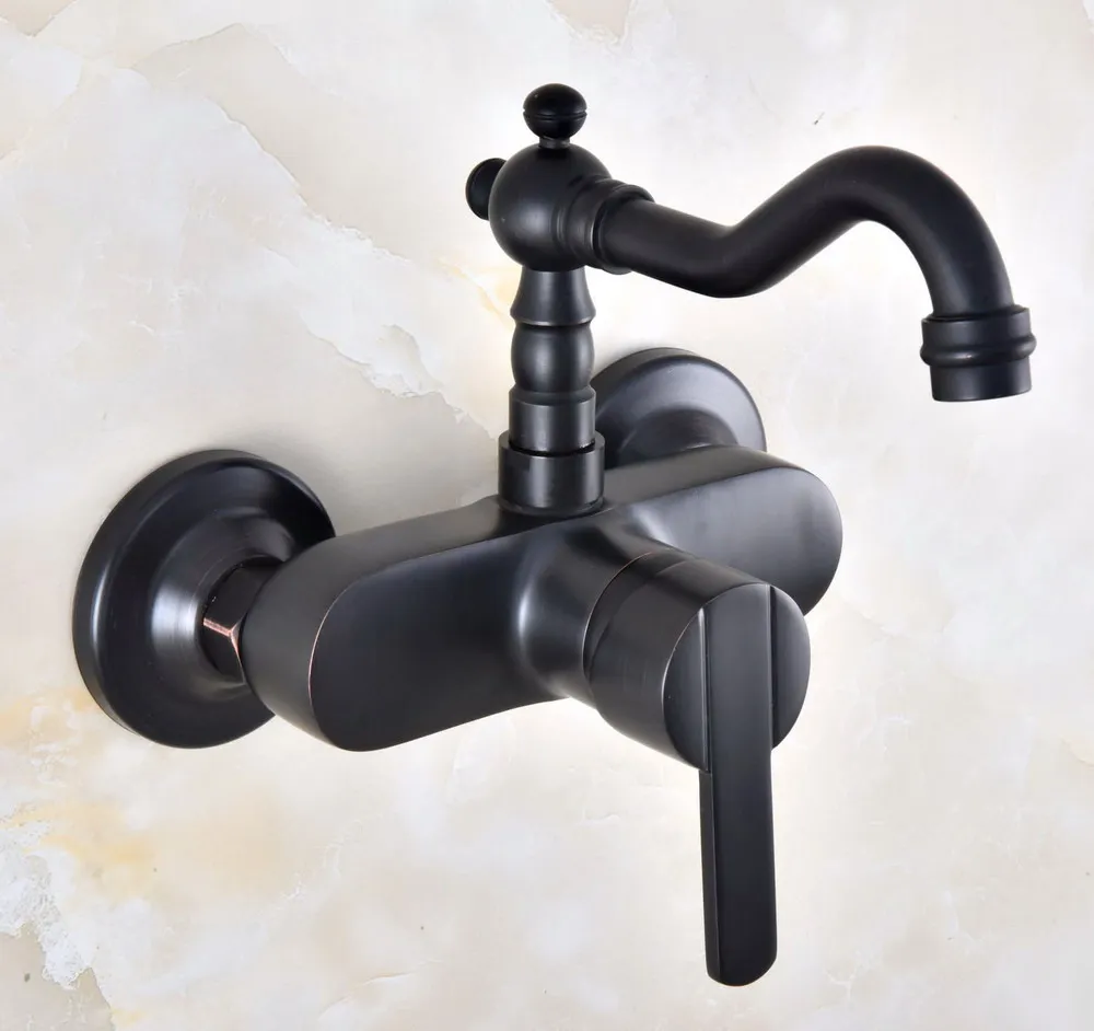 Черное масло, натертая латунь, настенный смеситель с одной ручкой, смеситель для ванной комнаты, кухонной раковины, поворотный излив anf844