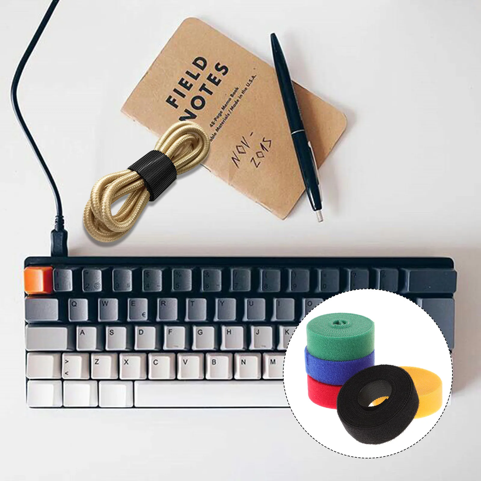 5pcs Reusable Cable Organizer Straps Hook Loop Design Sticky Cord Fixing Straps Adhesive Wire Management Ties For Earphone Data