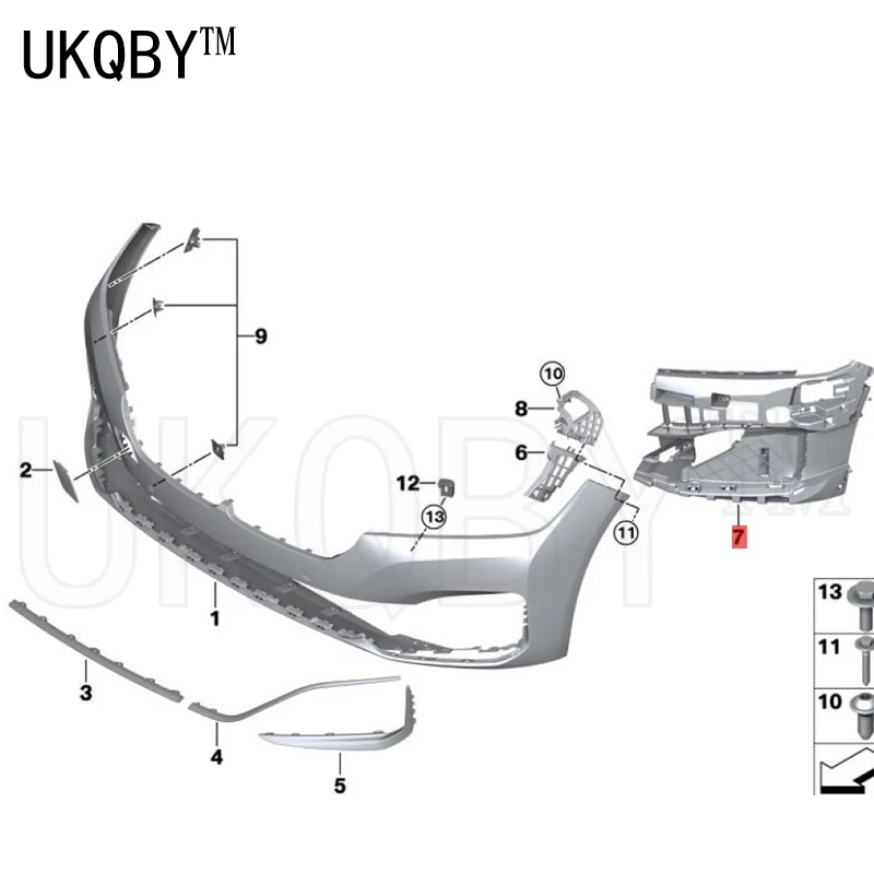 Левый передний бампер на боковой стороне кронштейна 7 система G11 G12 730d 740i 51117475185 51117475186