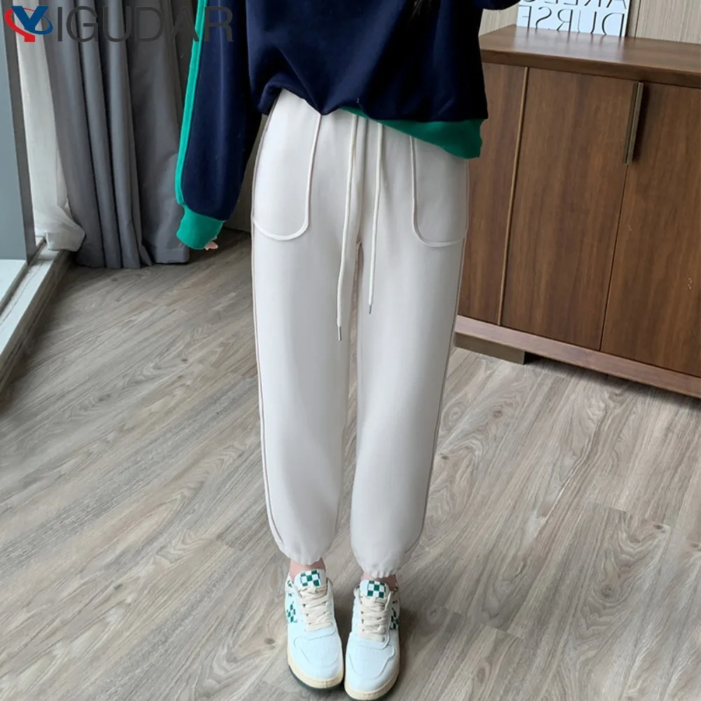Женский комплект из двух предметов, зимние толстые пуловеры с длинным рукавом и круглым вырезом с вышивкой и брюки с эластичной высокой тал...