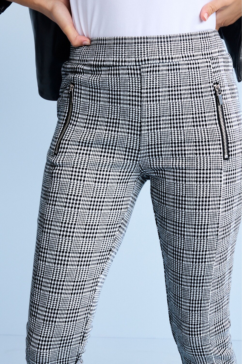 Леггинсы из ткани понте с молниями Монохромный черно-белый клетчатый узор Next, черный
