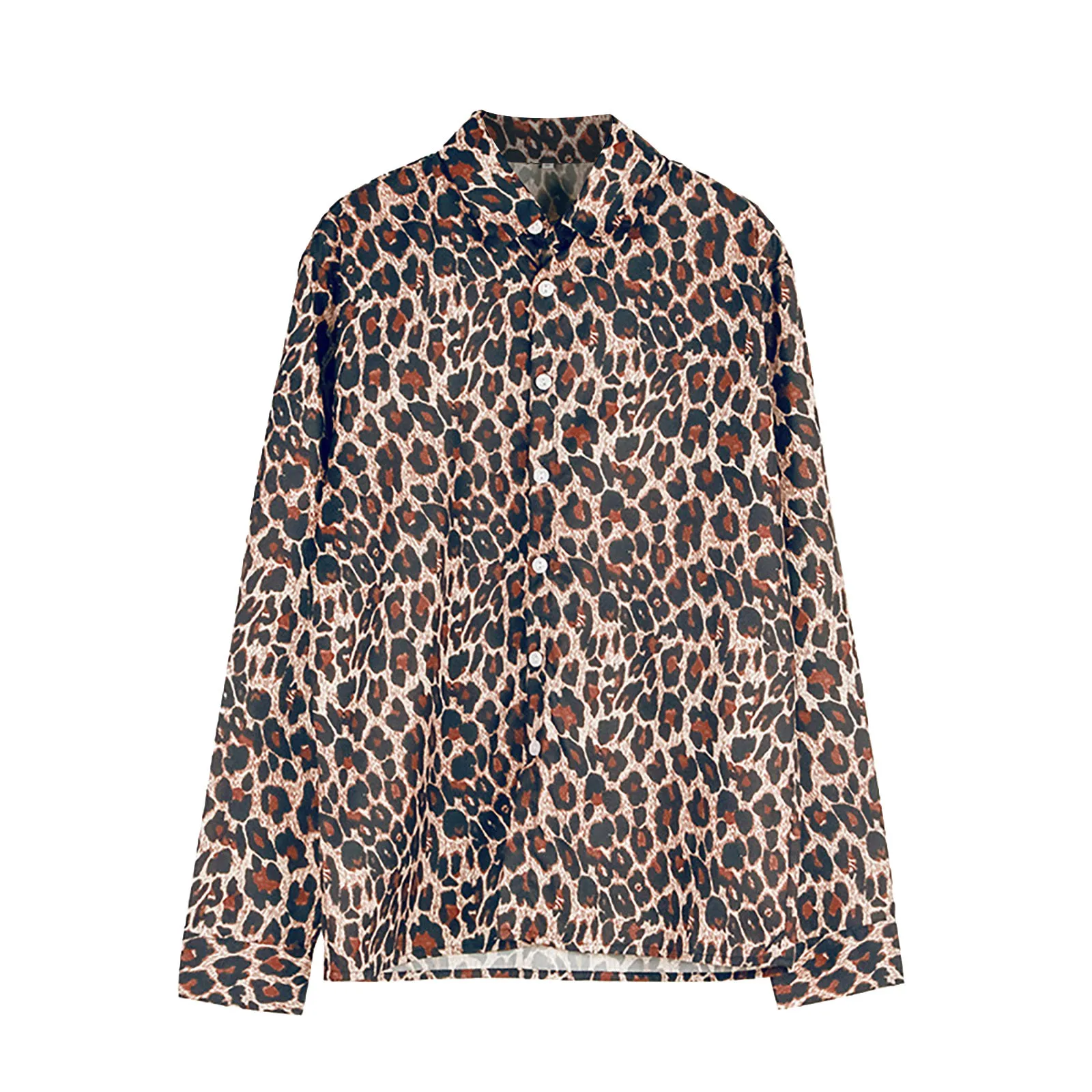 Мужские спортивные топы, повседневная мужская Свободная рубашка с отложным воротником, короткими рукавами и манжетами, с леопардовым принт...
