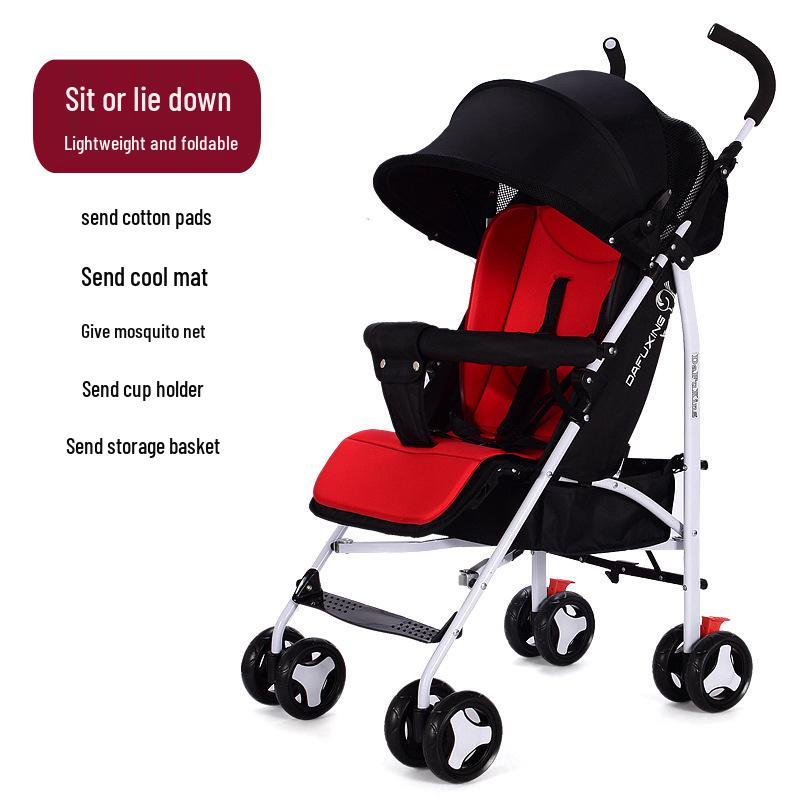 Легкая детская коляска, Складная коляска-трость для младенцев с положениями «сидя» и «лежа», Амортизирующая, Всесезонная, Включает хлопковый матрасик.