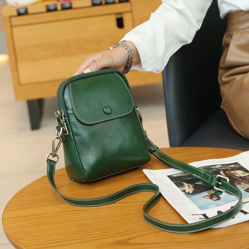 Легкая роскошная женская сумка из коровьей кожи, универсальная женская сумка, сумка-ведро для переноски, простая сумка для мобильного телефона, мягкая кожа зелёный