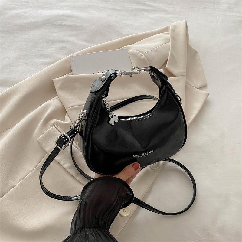Легкая роскошная ретро-портативная сумка-полумесяц 2024 года, новый модный французский нишевый дизайн, модная и простая сумка через плечо подмышкой чёрный