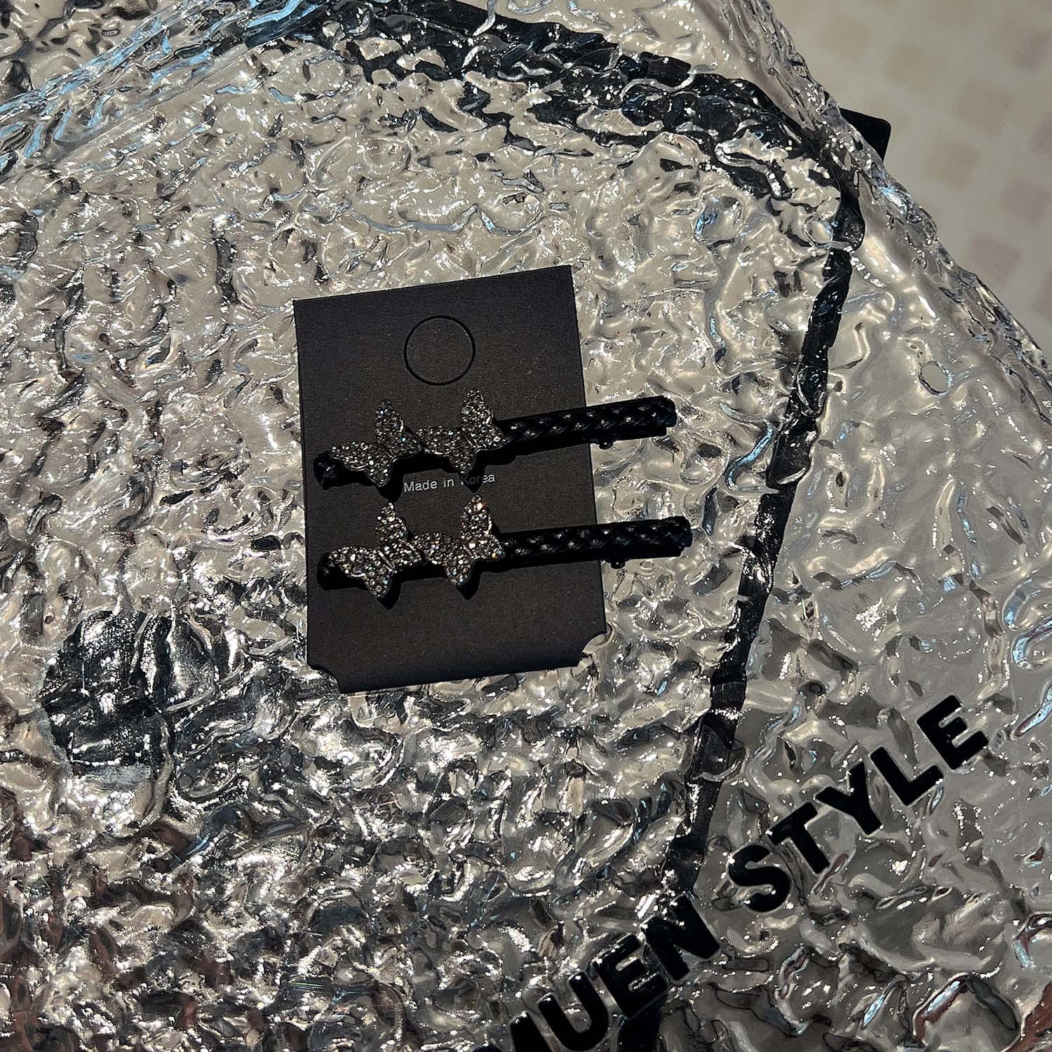 Легкая роскошная шпилька для волос в форме бабочки со стразами: Плетеная кожаная заколка-уточка для женской челки и волос по бокам