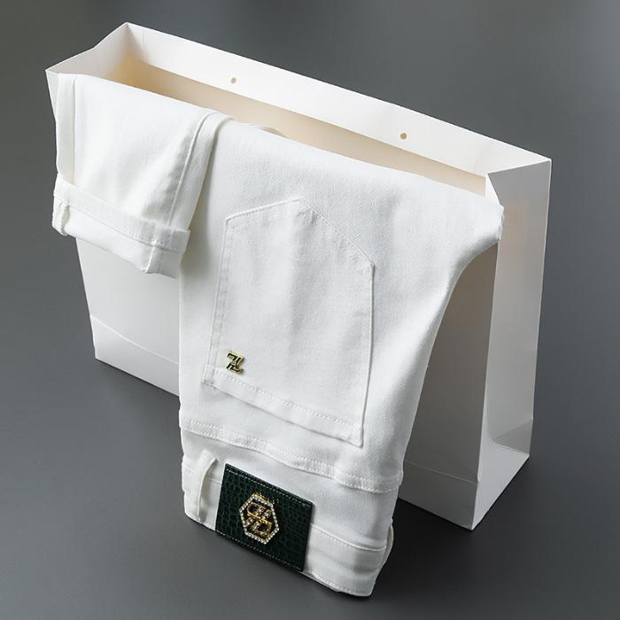Легкие роскошные мужские эластичные джинсы, мужские черные, не выцветающие, белые, три устойчивые к выцветанию ткани, маленькие прямые брюки 40 белый
