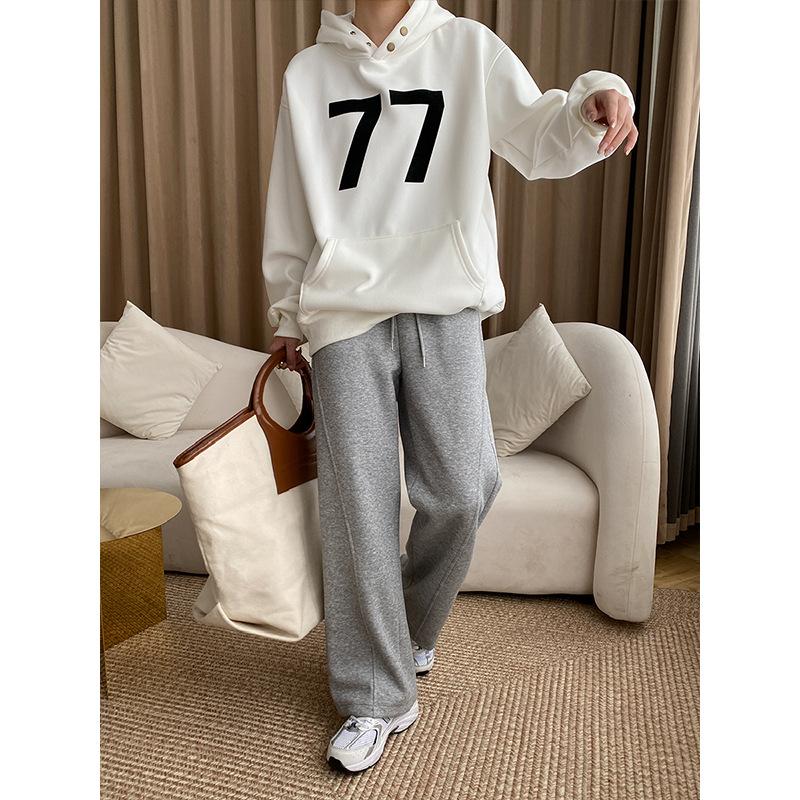 Легкий изогнутый дизайн по ширине, эластичная талия, широкие штанины, длина до пола, повседневные брюки, осень и зима XL серый