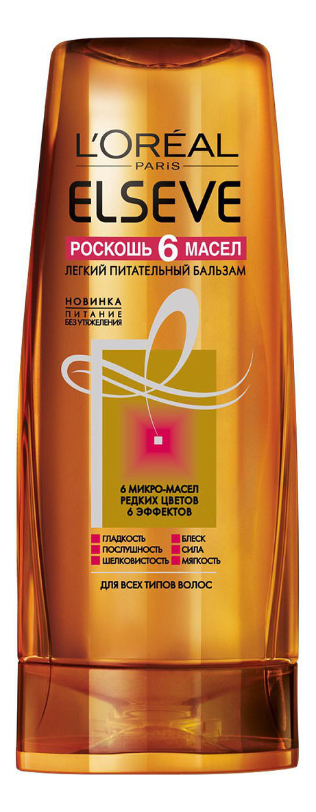 Легкий питательный бальзам для волос Роскошь 6 масел ELSEVE 400мл: Бальзам 400мл, Легкий питательный бальзам для волос Роскошь 6 масел ELSEVE